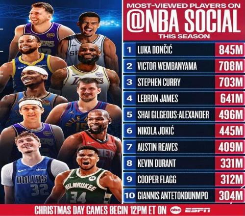 圣诞大战是以球员流量为导向,NBA本赛季的10大流量球员,有9个都会亮相,猜猜谁被BAN了?