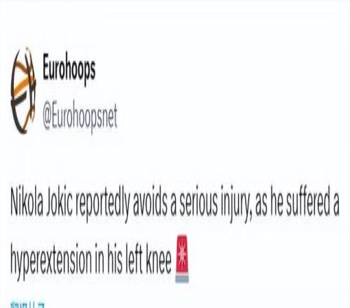 北京时间12月30日,据塞尔维亚媒体《子午线体育》报道,丹佛掘金队的超级巨星约基奇成功避免了左膝严重伤病。