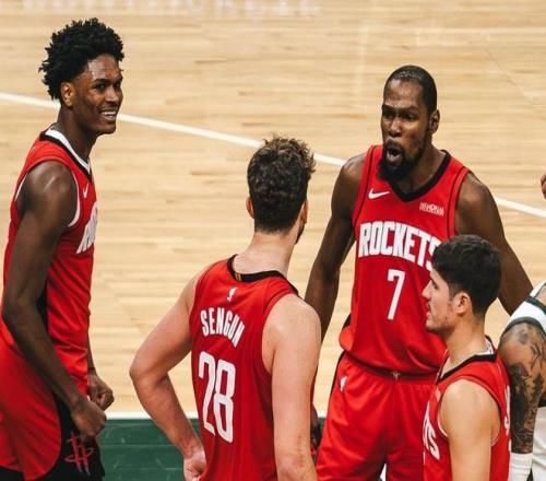 如果三位中锋缺阵,那么火箭队完全可以使用这样的阵容去和篮网队对决。即便火箭队内线几乎无人可用,他们还可以派上五前锋阵容和对手周旋,因为火箭队本赛季使用五前锋出场比赛的时候,他们的胜率特别高,最近他们还战胜过湖人队和骑士队这两支劲旅。