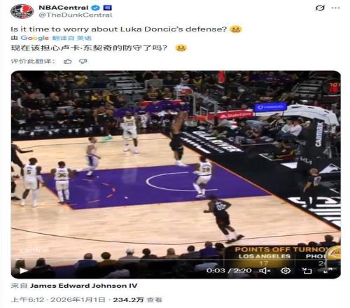 跨年夜大战后,美媒一段集锦视频登上热门,标题是“现在该担心卢卡·东契奇的防守了吗?”。