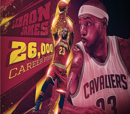 2015—16赛季,在骑士对阵活塞的比赛中,詹姆斯成功解锁26000分,这使得他成为历史上最年轻的26000分先生