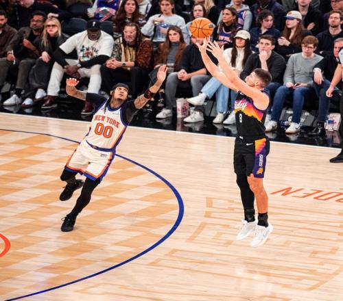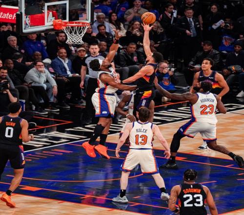 这一个比赛日,正处于两连败的太阳,奔赴纽约在大都会球场挑战尼克斯,本场比赛布伦森继续缺阵,虽然麦克布莱德表现不俗,但是统治力依旧无法和布伦森相提并论,而迎回核心布克的太阳,在落后10分的情况下,以106-99逆转获胜。