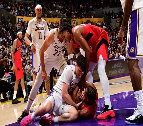 第四节湖人艾顿拿下7分,猛龙AJ-劳森拿下5分,最终湖人110-93战胜猛龙