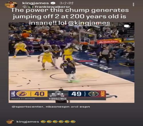 詹姆斯200岁还能扣太离谱!本人回应朋友称赞:6个笑哭了表情